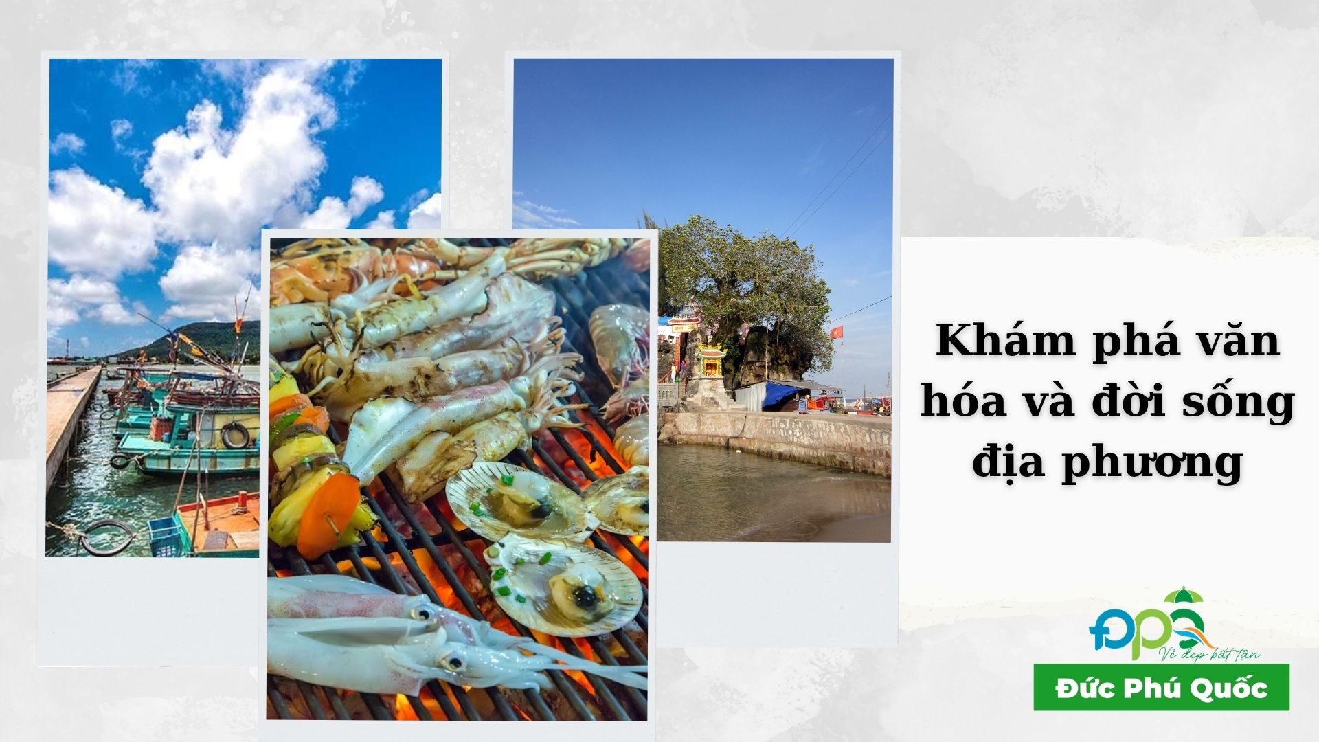 Làng chài Hàm Ninh lại mang đến trải nghiệm đời sống ngư dân, nơi bạn có thể xem thuyền cập bến và thưởng thức ghẹ Hàm Ninh, mực nướng, tôm hấp. Những món ăn tươi ngon này khiến chuyến đi thêm trọn vẹn.